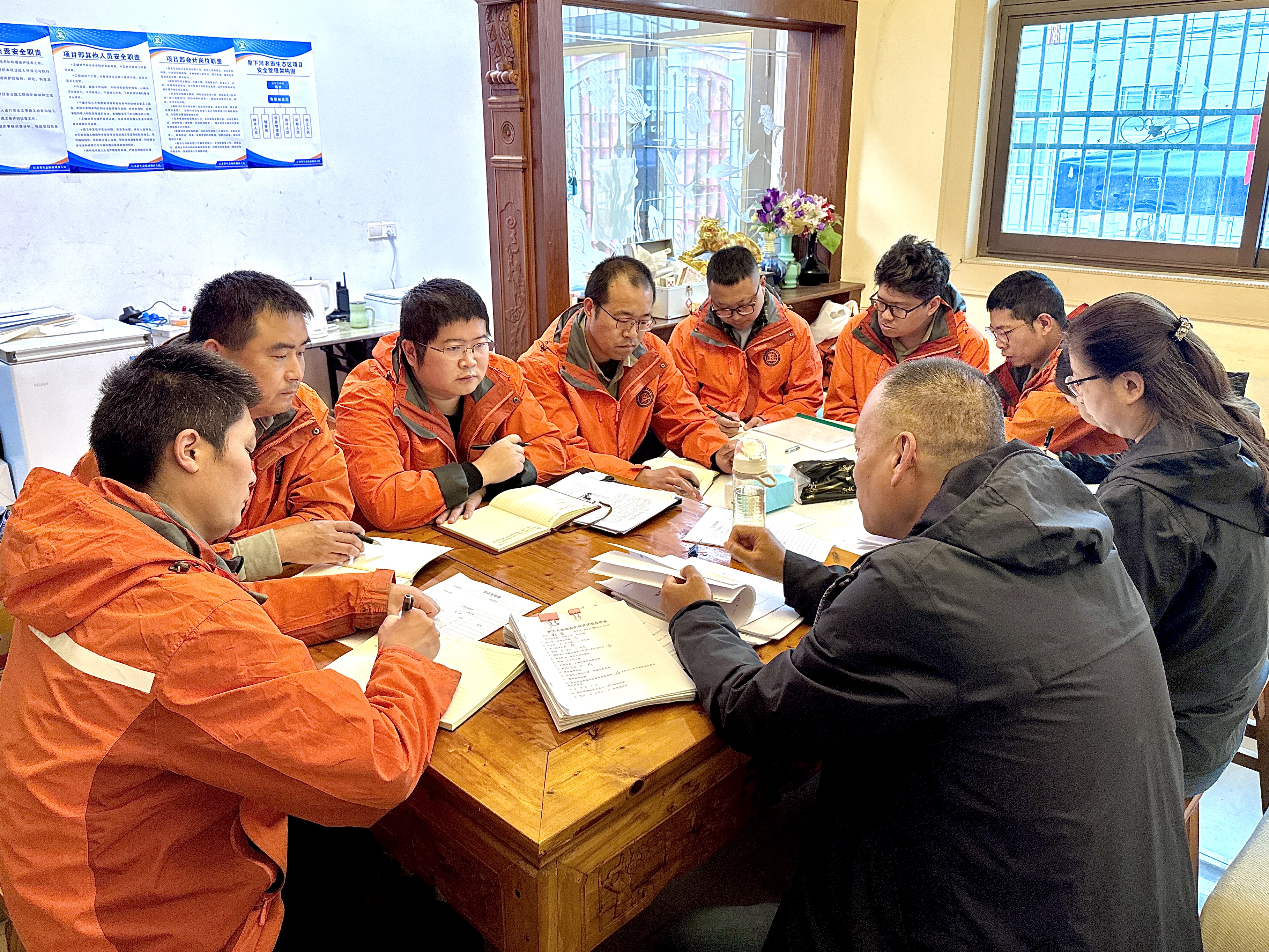 督查组一行首先深入里下河项目作业现场,对安全生产工作进行全方位排查。王伟华重点围绕项目车辆管理、应急药品储备、劳保用品配备、安全应急预案制定及灭火器等消防设施运维情况展开详细询问与检查。每到一处,他都仔细核对相关台账,并叮嘱项目负责人要时刻绷紧安全生产弦,严格落实安全管理制度,定期开展应急演练,确保各类风险隐患早发现、早处置,切实保障项目人员的生命安全与项目平稳推进。在廉政检查环节,薛松聚焦项目廉政风险点排查、人员考勤管理、资金使用规范等关键领域,通过查阅资料、谈话询问等方式进行细致督查,并对项目全体人员进行廉政提醒,强调要深刻认识廉政建设对项目发展的重要意义,时刻筑牢思想防线,严守纪律底线,坚决杜绝吃拿卡要、虚报冒领等违规违纪行为,确保项目建设廉洁高效。